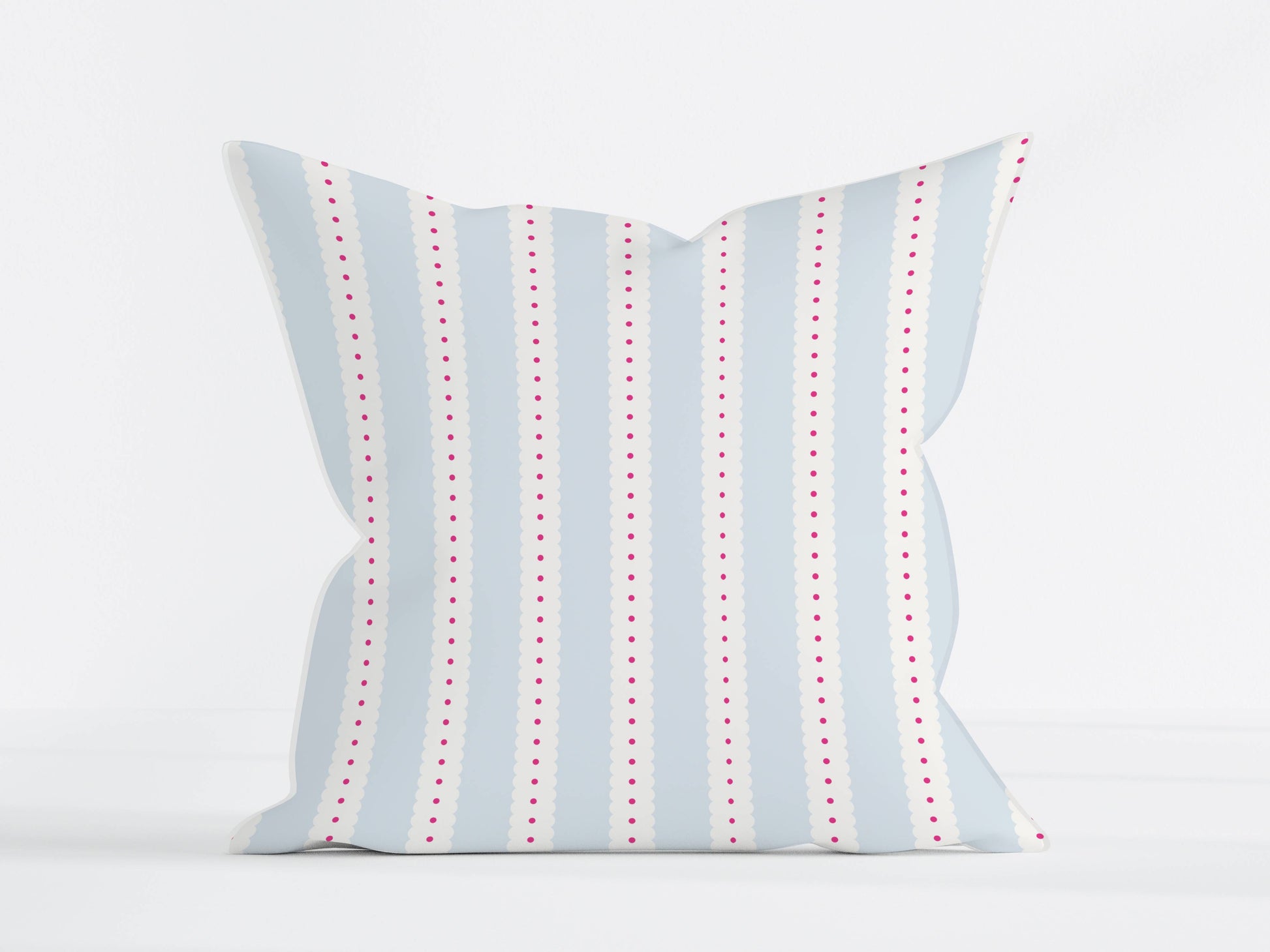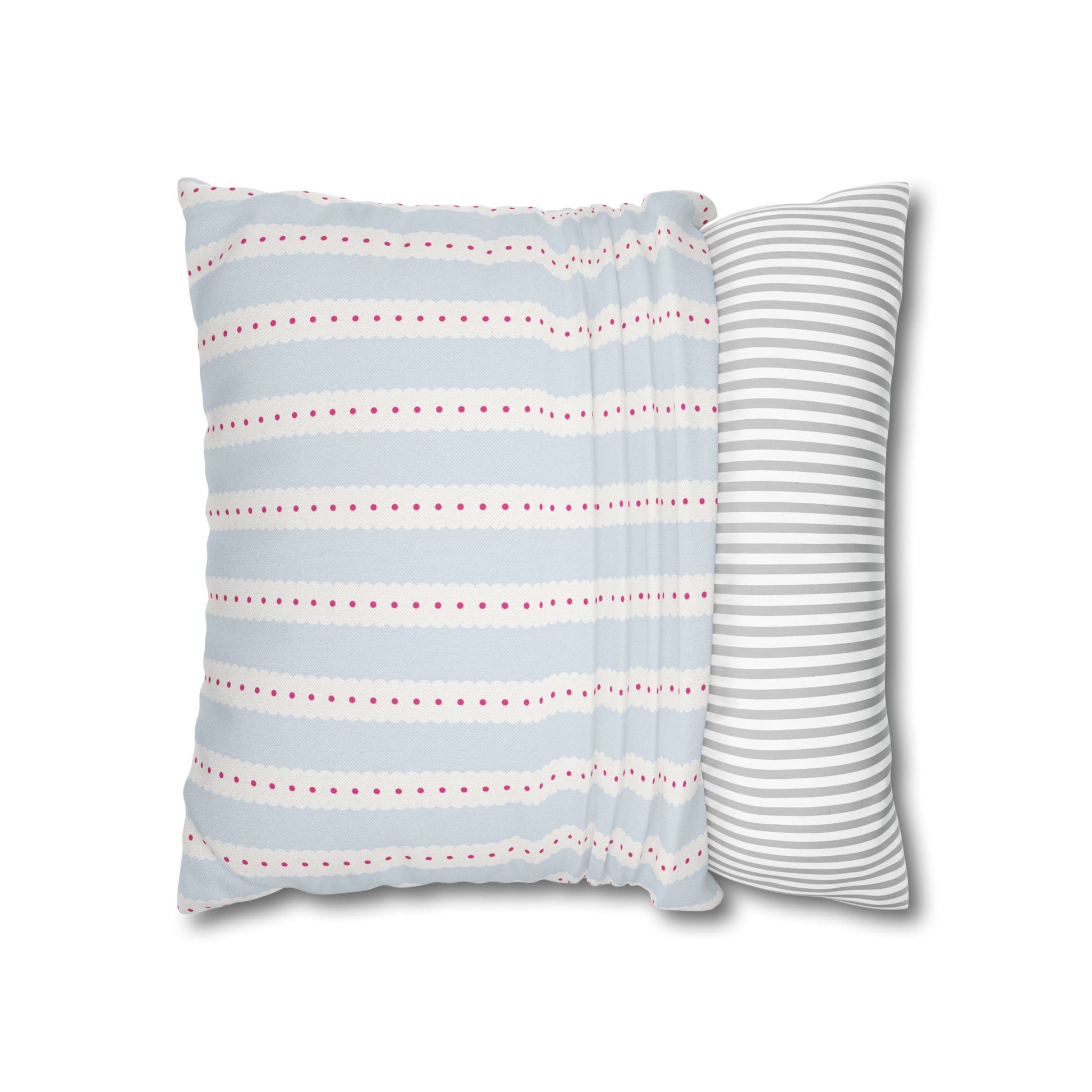 Add a soft, cheerful touch to your space with this blue stripe pillow cover, featuring delicate pink dot details for a playful finish 🤍