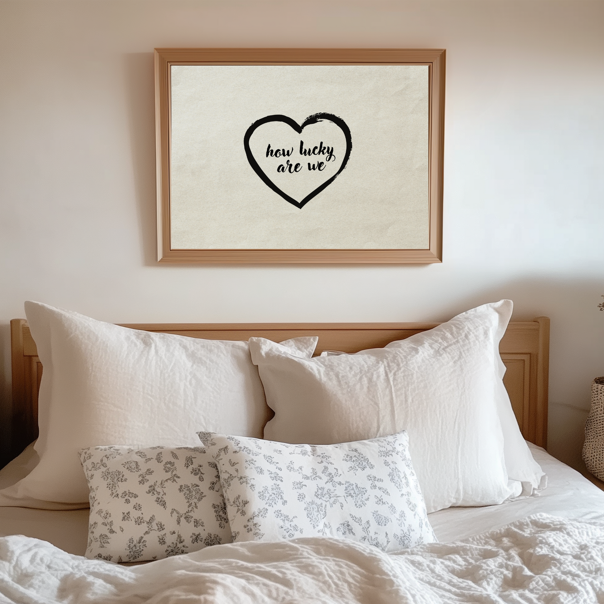 This “How Lucky Are We” heart wall art poster features a hand-drawn heart and soft, neutral tones that bring warmth without overwhelming your space. Simple, meaningful, and timeless — made for rooms that feel lived in and loved.
