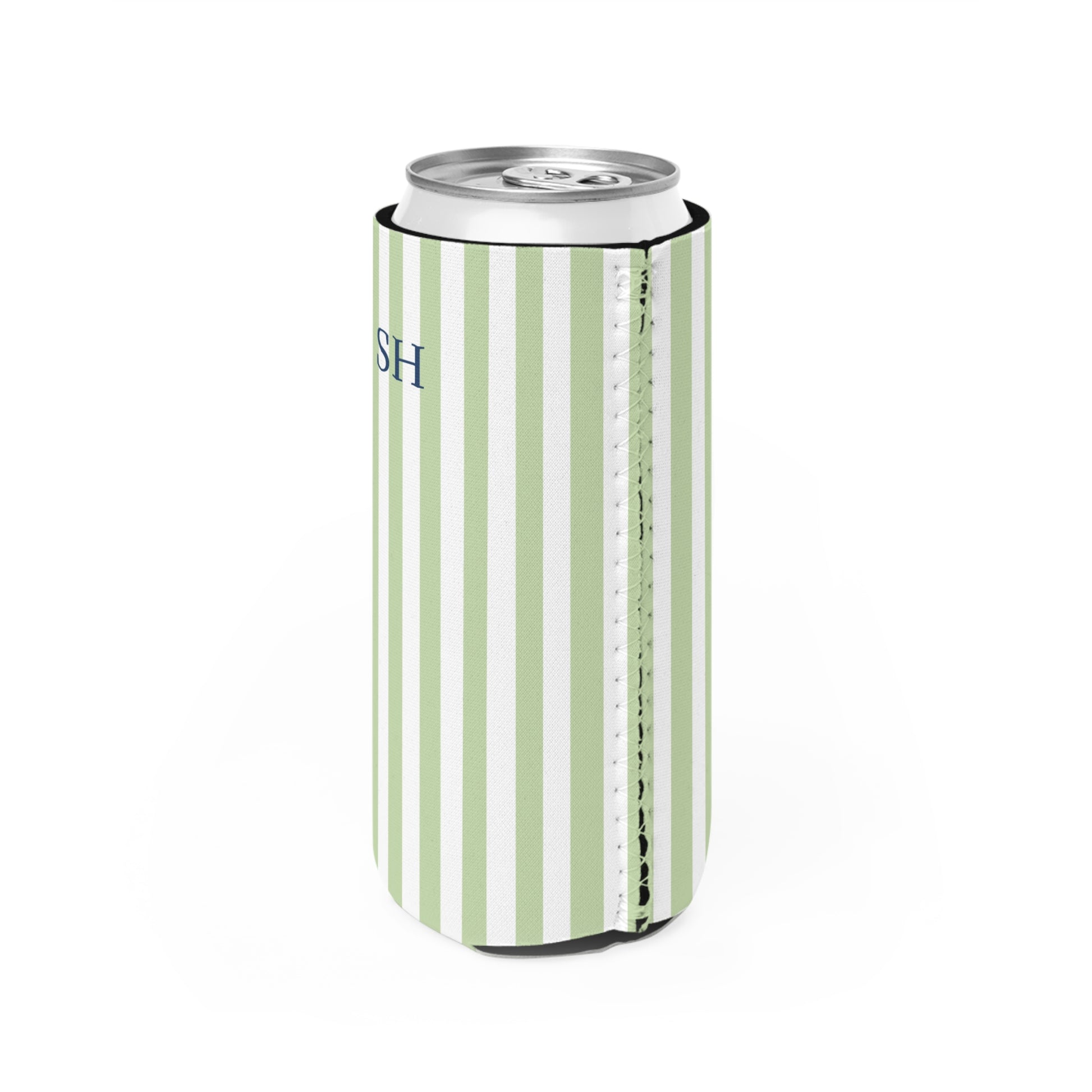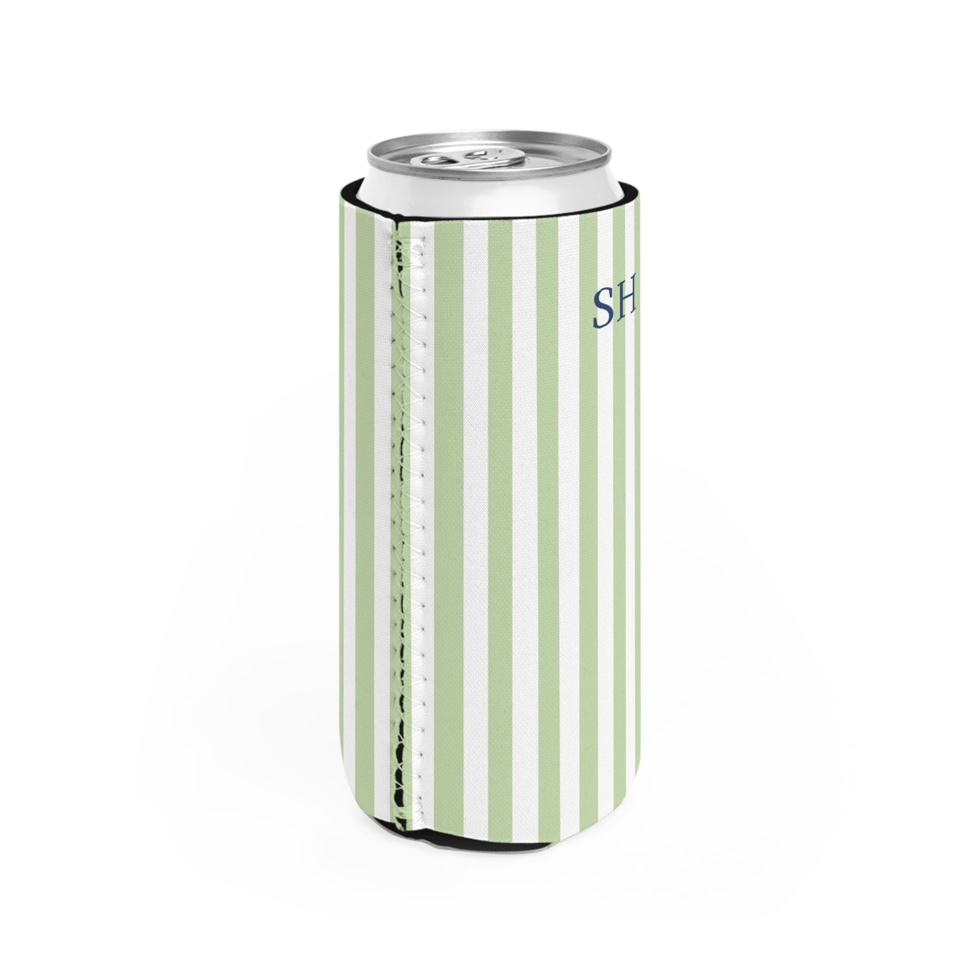 Personalized Slim Can Cooler – Everyday Personalized Essential (Sage Green Stripe)